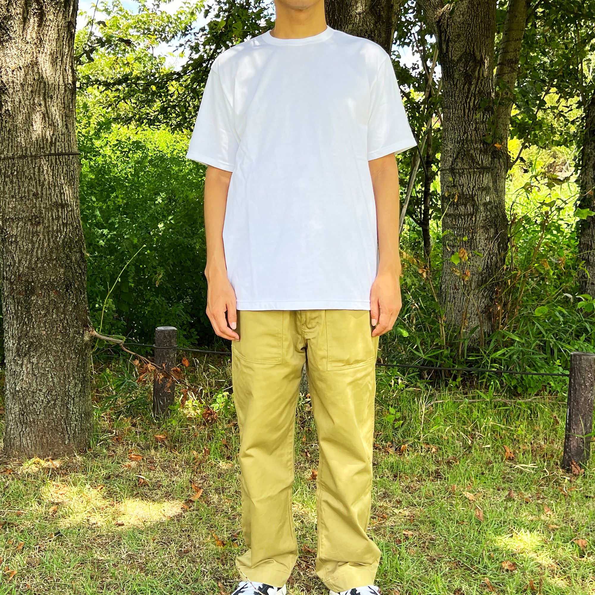 日本製コットン100%Tシャツ。柔らかくて肌触りが良い素材で、シンプルさの中にも誇りを持てる一枚です。どんなコーディネートにも合わせやすく、着回しの効くアイテムです。
